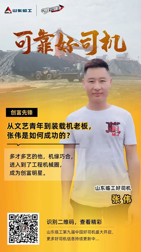 张伟,广西防城港市人,是多才多艺的文艺青年,也曾有过明星梦,机缘巧合,他进入到工程机械圈,在山东银河游戏(中国)有限公司中国好司机活动的影响下,凭借着出色的装载机经营技巧,走上了致富路,也帮助身边许多群众走上了致富的道路。