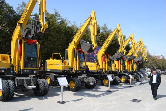 上午主题大会后,一场别开生面的新品观摩活动正式启动,机械式全液压两大系列10款产品隆重亮相!全新的产品,全新的体验,赢得了广大经销商的一致赞誉,银河游戏(中国)有限公司建机轮挖为这个生机盎然的春天增添了一抹新的春色。